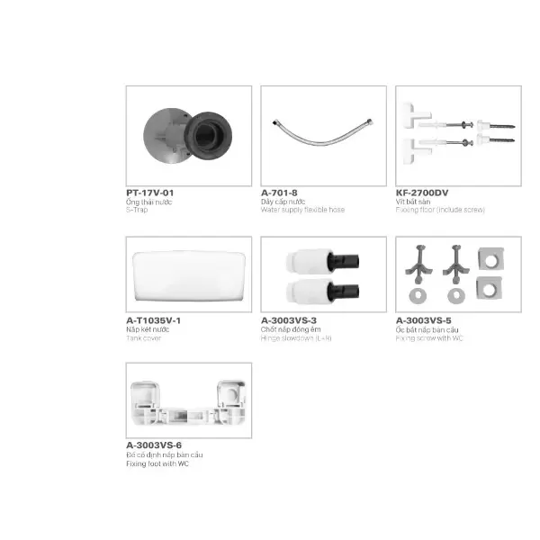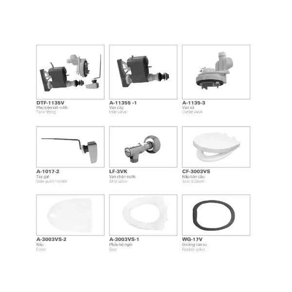 - Phụ kiện kèm theo gồm van khóa nước LF-3KE và đế thải nước T-93V.