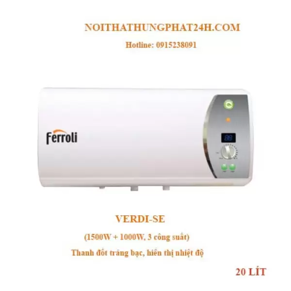 - Bình Nóng Lạnh Ferroli Gián Tiếp Verdi SE 20L được trang bị thêm đèn LED hiển thị trạng thái hoạt động của bình. Khi đèn LED hiển thị màu đỏ là bình đang đun nước và ngược lại đèn LED hiển thị màu xanh là bình đã dừng đun nước.
