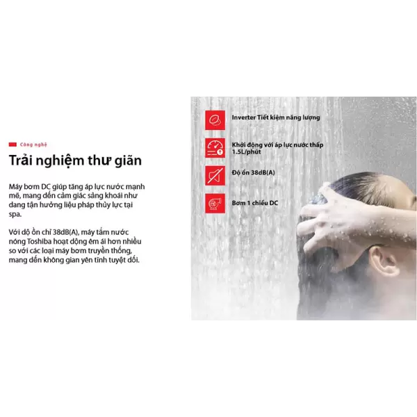 Với những khu vực có áp lực nước yếu, Toshiba TWH-45MCPVN(S)-WB là cứu cánh tuyệt vời. Bơm trợ lực giúp dòng nước phun ra mạnh mẽ hơn, đều đặn hơn. Đặc biệt, công nghệ bơm của Toshiba được tối ưu hóa để giảm thiểu tiếng ồn, trả lại không gian yên tĩnh tuyệt đối cho bạn thư giãn sau ngày dài.