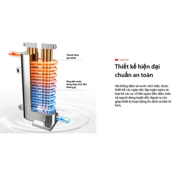Thiết bị tích hợp hệ thống bảo vệ đa lớp cùng chip xử lý thông minh, liên tục theo dõi và điều chỉnh nhiệt độ nước ổn định từng giây. Công nghệ tách biệt hoàn toàn giữa hệ thống điện và nước giúp ngăn chặn triệt để các sự cố rò rỉ, bảo vệ an toàn tuyệt đối.