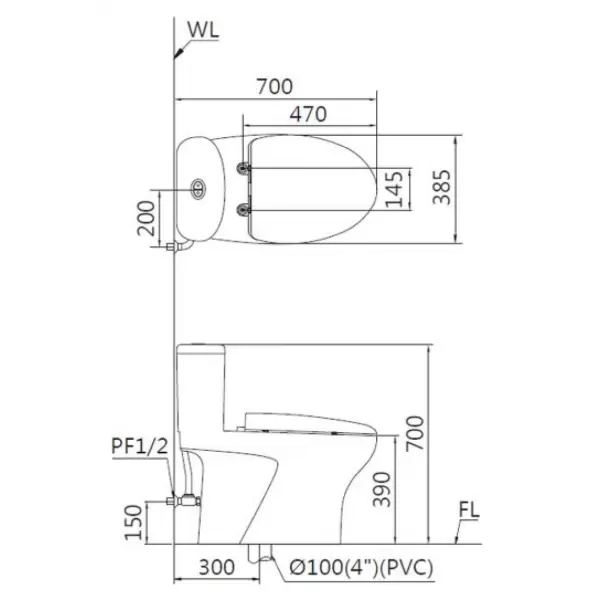 | Loại bồn cầu | Bồn cầu 1 khối (liền khối) |