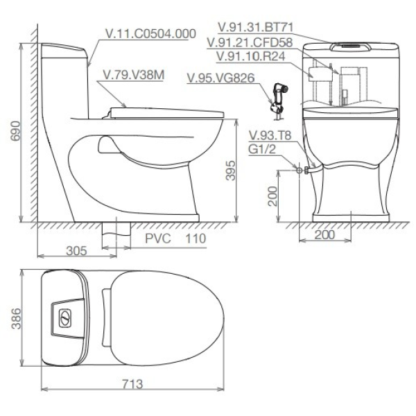 | THÔNG SỐ KỸ THUẬT BỒN CẦU 1 KHỐI VIGLACERA C0504 | |