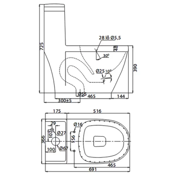 THÔNG SỐ KỸ THUẬT BỒN CẦU 1 KHỐI VIGLACERA V35 |