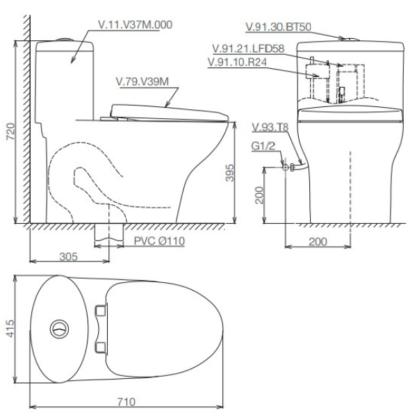 | THÔNG SỐ KỸ THUẬT BỒN CẦU 1 KHỐI VIGLACERA V37M | |