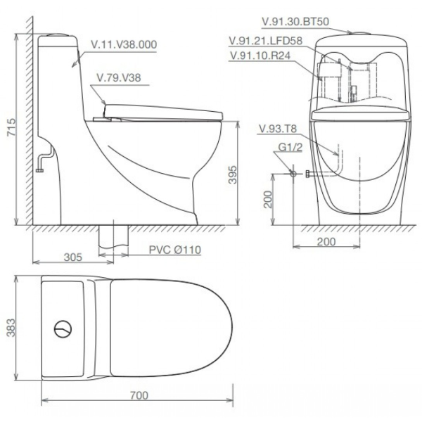 Thông số kỹ thuật bồn cầu 1 khối Viglacera V38