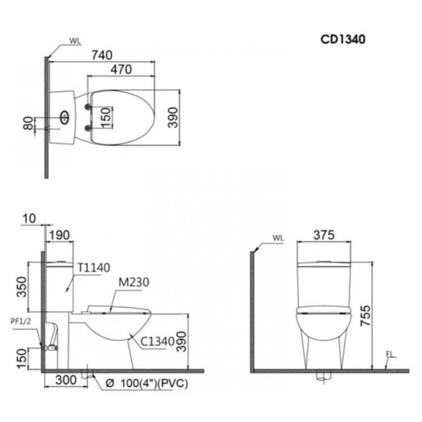 | Công nghệ xả | Xả xi-phông mạnh mẽ, tiết kiệm nước |