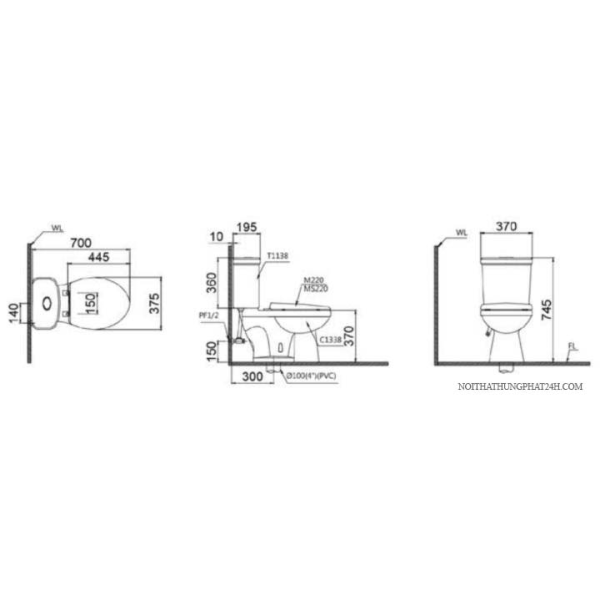 | Nắp bồn cầu | Tùy chọn nắp thường M220 hoặc nắp êm MS220 |