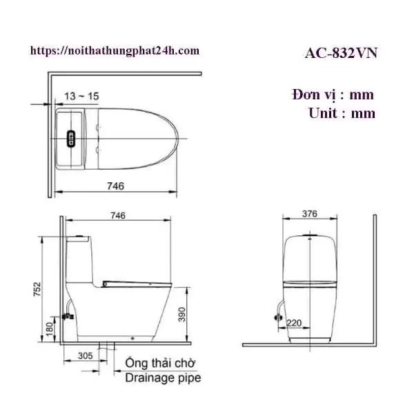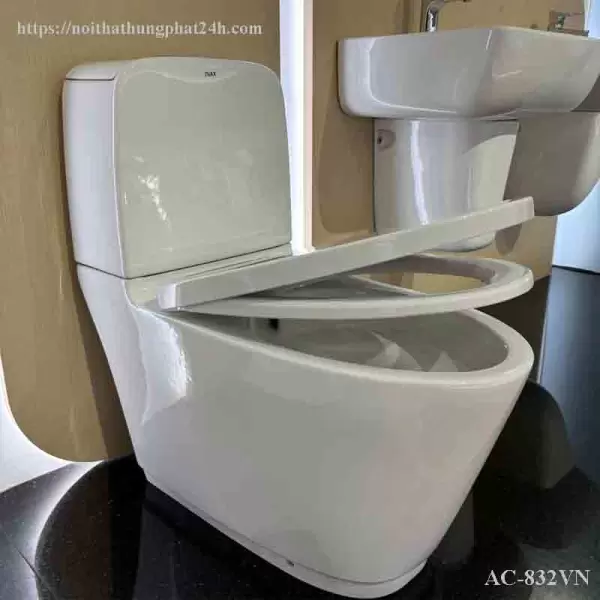 ✅ Thiết kế hiện đại – Bồn cầu AC-832VN với thiết kế 2 khối tiện lợi, dễ dàng lắp đặt và vệ sinh, phù hợp với nhiều không gian phòng tắm.