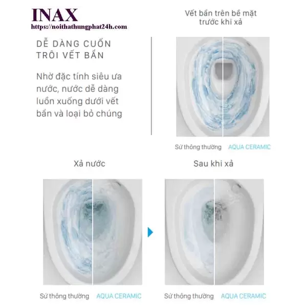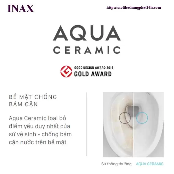 • Bề mặt sứ được phủ lớp men Aqua Ceramic giúp ngăn ngừa bám cặn, vi khuẩn và ố vàng