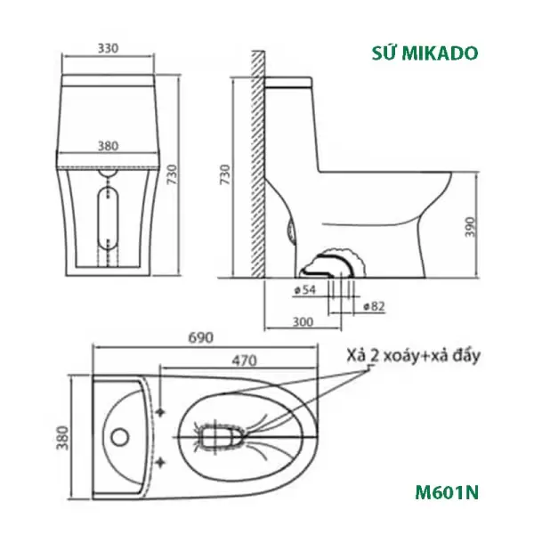 Bồn cầu Mikado M601N 1 khối là loại bồn cầu thiết kế liền khối, kết hợp giữa phần bồn cầu và bệ vệ sinh, mang lại sự sang trọng và tiện lợi cho không gian nhà vệ sinh.