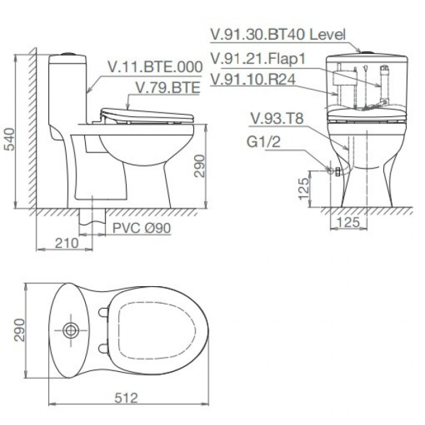 | THÔNG SỐ KỸ THUẬT BỒN CẦU 1 KHỐI VIGLACERA BTE | |
