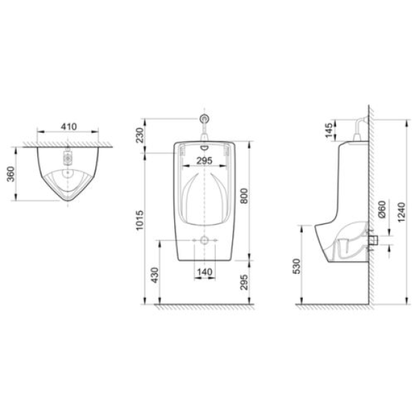 Bản vẽ kỹ thuật bồn tiểu nam Inax U-411V