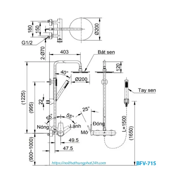 | Thiết kế | Sen cây đứng, bát sen đặt trên cao, tay gạt vòi đơn giản |