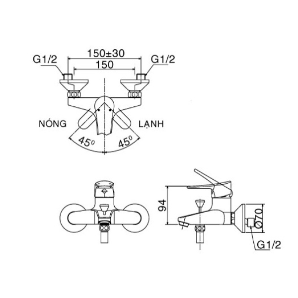 Thông số kỹ thuật Củ sen tắm nóng lạnh Inax BFV-1003S-2C |