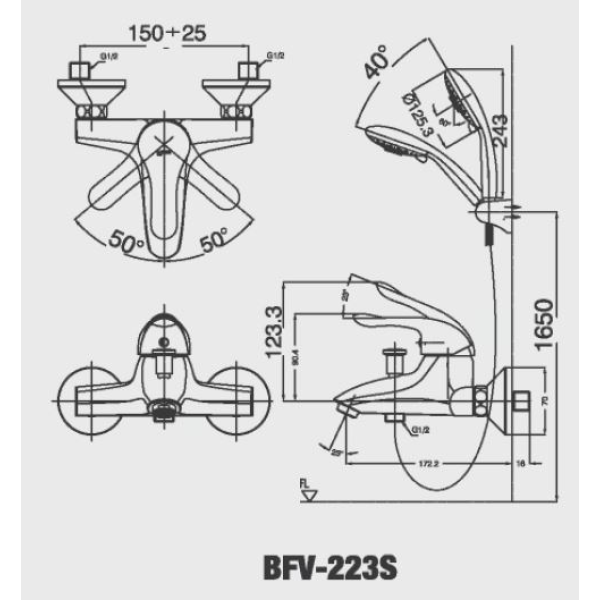 | Thông số kỹ thuật Củ sen tắm nóng lạnh Inax BFV-223S | |