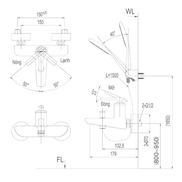 | Áp lực nước | 0.05 – 0.75 MPa |