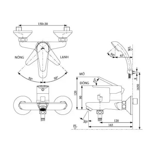 Củ sen tắm nóng lạnh gắn tường |