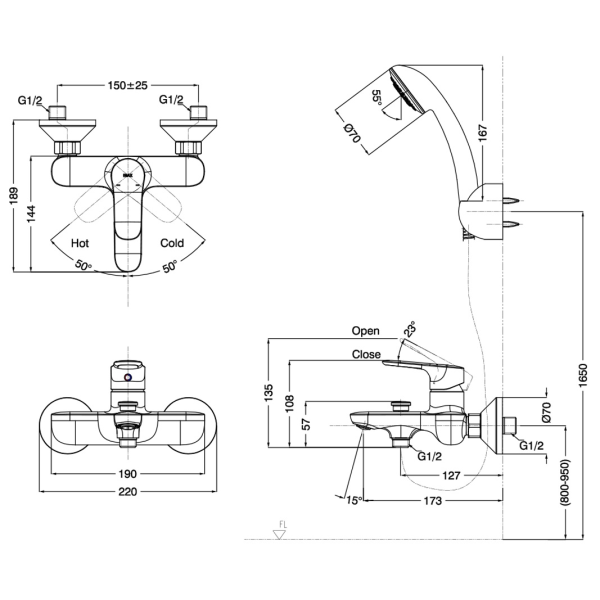 | Áp lực nước | 0.05 – 0.75 MPa |