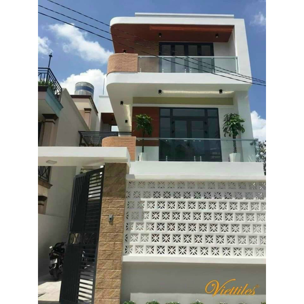 Phối cảnh gạch bông gió Viettiles VCB-001-1000 làm tường rào