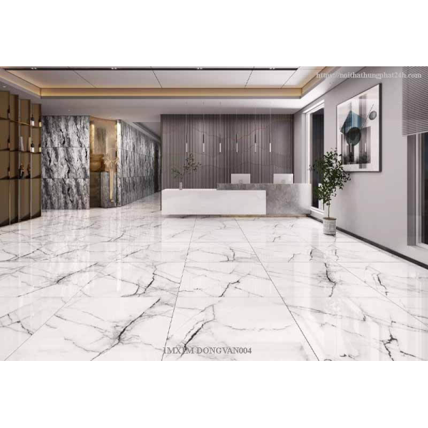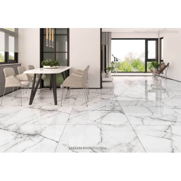 Gạch Đồng Tâm 1000x1000 DONGVAN004-FP-H+ là dòng gạch lát nền cao cấp thuộc bộ sưu tập DONGVAN, sở hữu tông màu trắng thanh lịch kết hợp họa tiết vân đá tự nhiên tinh tế.