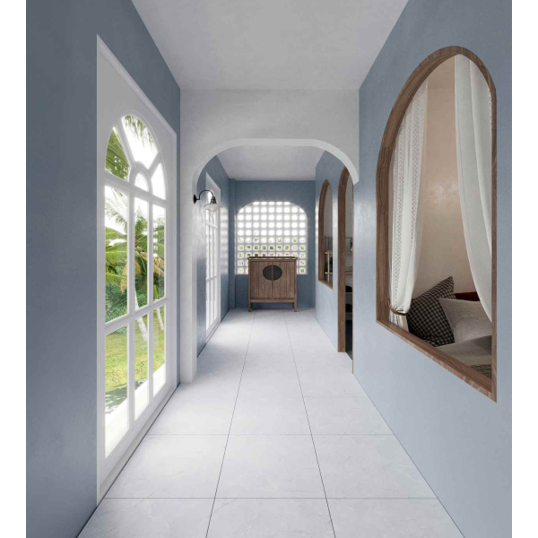 Gạch Đồng Tâm 600x600 VAMCOTAY002 mang trong mình thông điệp tôn vinh giá trị quê hương Nam Bộ, thể hiện rõ qua đường nét vân đá mềm mại như làn nước sông Vàm Cỏ trôi nhẹ. Tông trắng tinh khôi của gạch tạo nên cảm giác mở rộng không gian, phù hợp với xu hướng thiết kế hiện đại và tối giản.