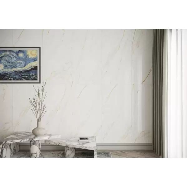 Mẫu gạch vân đá trắng sáng phù hợp với đa dạng phong cách nội thất từ cổ điển đến tối giản.