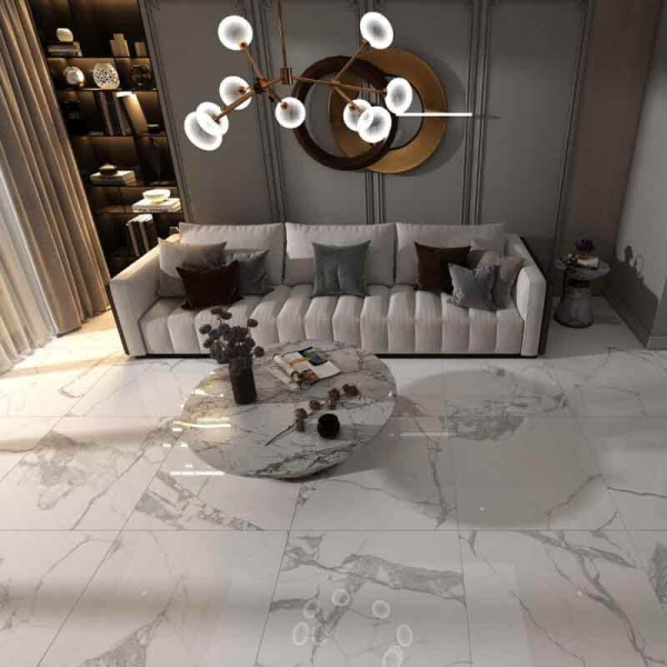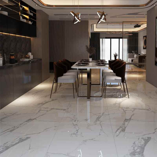 Bề mặt men bóng được xử lý tinh xảo giúp phản chiếu ánh sáng tự nhiên một cách tối ưu, tạo cảm giác không gian rộng mở, thanh lịch và tràn đầy sinh khí.