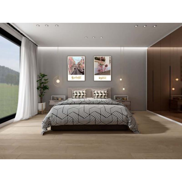 Vẻ đẹp tự nhiên và sang trọng: Gạch mang đến vẻ đẹp ấm cúng của gỗ tự nhiên, đồng thời tạo sự sang trọng và hiện đại cho không gian.