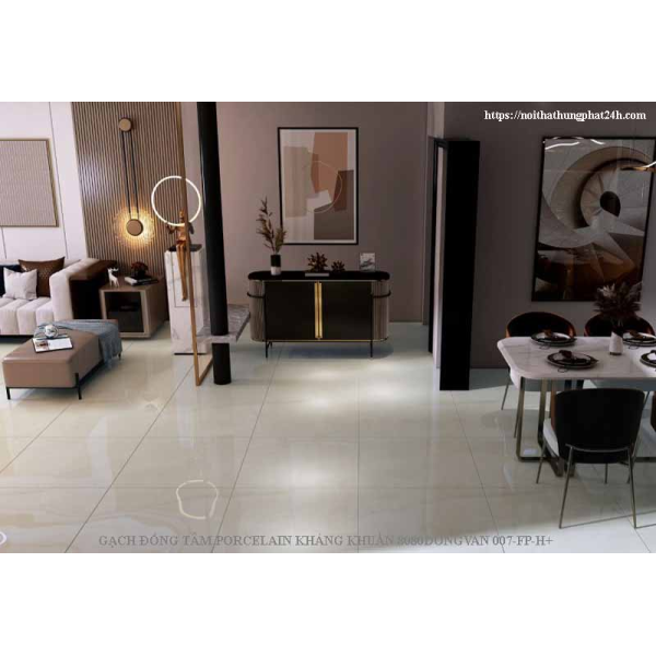 Gạch được phủ men bóng mài, tạo hiệu ứng như kính, giúp phản chiếu ánh sáng hiệu quả, làm không gian trở nên rộng rãi, thoáng đãng và hiện đại hơn. Đây là lựa chọn lý tưởng cho các không gian cần sự sang trọng và tinh tế.