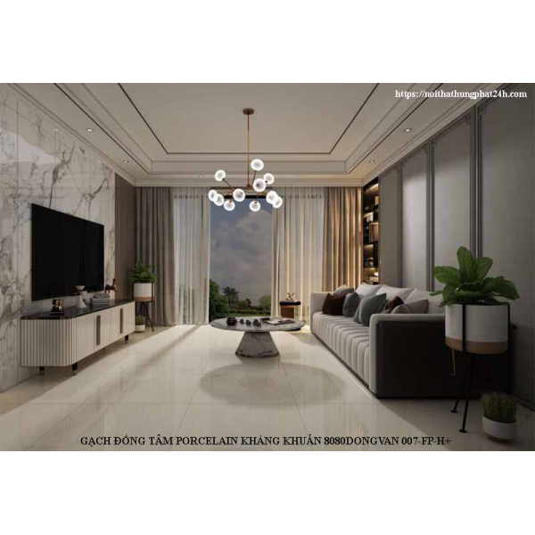 Gạch lát nền Đồng Tâm 8080DONGVAN007-FP-H+ là gạch porcelain kháng khuẩn cao cấp, bề mặt vân đá sang trọng, lấy cảm hứng từ Cao nguyên đá Đồng Văn – Hà Giang, phù hợp cho không gian sống hiện đại, an toàn và thẩm mỹ.