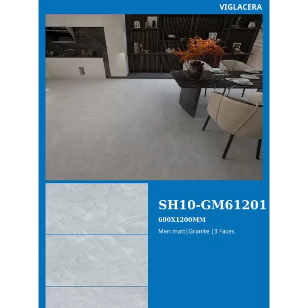 Gạch lát nền Viglacera 60x120 SH10-GM61201 là dòng gạch porcelain khổ lớn sản xuất theo công nghệ châu Âu. Điểm mạnh nổi bật của sản phẩm là bề mặt men matt chống chói, vân đá tự nhiên và độ bền cao. Gạch phù hợp cho gia chủ ưu tiên sự an toàn, tinh tế trong thiết kế. Sản phẩm phát huy hiệu quả tốt nhất ở phòng khách, hành lang, sảnh và khu vực sử dụng thường xuyên.