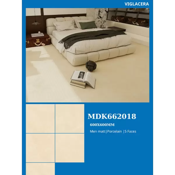 Gạch Porcelain MDK662018 vốn rất bền và ít cần bảo dưỡng. Bề mặt men matt chỉ cần lau chùi định kỳ bằng nước sạch hoặc dung dịch tẩy rửa nhẹ thông thường. Do độ hút nước thấp, gạch ít bám bẩn và vết ố. Quan trọng là tránh sử dụng các hóa chất có tính axit mạnh có thể làm hỏng lớp men gạch về lâu dài.
