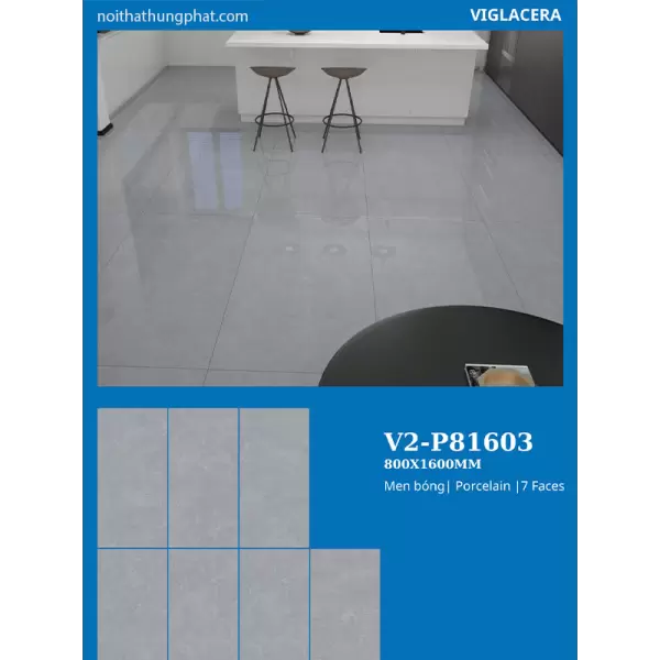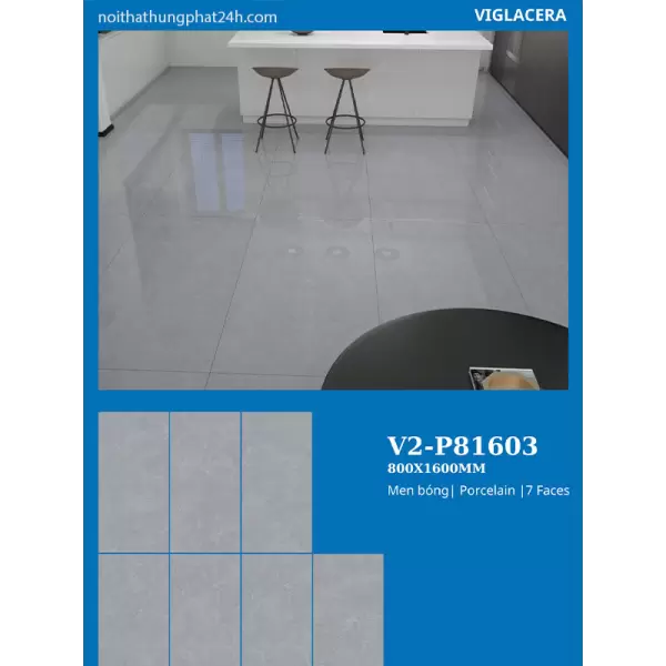 Gạch lát nền Viglacera 80x160 V2-P81603 là dòng gạch granite khổ lớn cao cấp dùng cho lát nền và ốp tường. Điểm mạnh nhất là độ cứng chắc, bề mặt men bóng sang trọng cùng họa tiết in kỹ thuật số sắc nét. Sản phẩm phù hợp với nhà phố, căn hộ cao cấp và công trình thương mại. Tối ưu cho phòng khách rộng, sảnh và không gian cần tính thẩm mỹ đồng bộ.