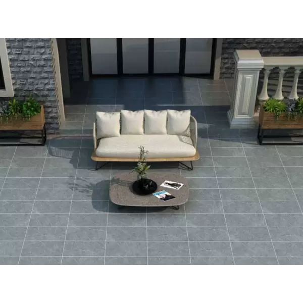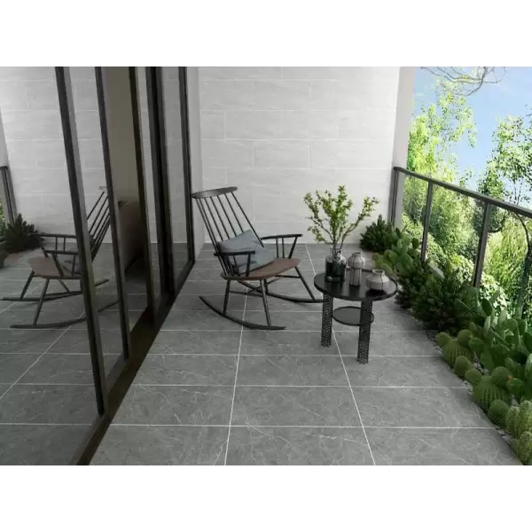 Với hoa văn vân đá tự nhiên và màu xám đậm sang trọng, gạch mang đến vẻ đẹp hiện đại, tinh tế cho không gian ngoại thất.