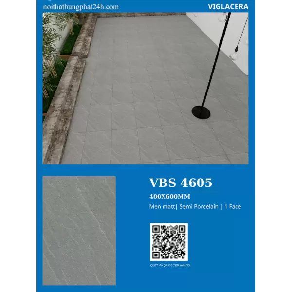Gạch lát sân vườn 40x60 Viglacera VBS4605 là sản phẩm gạch Semi Porcelain, kích thước 40x60cm, chuyên dùng cho không gian ngoại thất. Điểm mạnh nhất của gạch là khả năng chống trơn trượt hiệu quả nhờ bề mặt nhám, độ bền cao và tính thẩm mỹ với họa tiết vân đá. Sản phẩm phù hợp cho chủ nhà, kiến trúc sư, nhà thầu tìm vật liệu chất lượng cao, an toàn, sử dụng tốt nhất cho sân vườn, ban công, và lối đi.