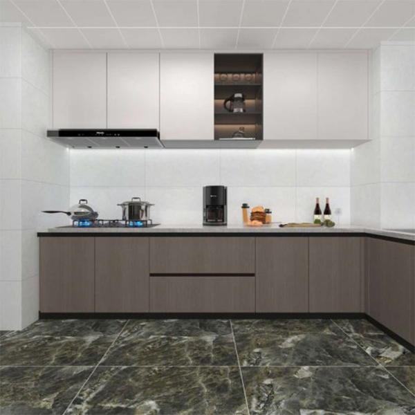 Tính thẩm mỹ cao: Với thiết kế vân đá tự nhiên, màu sắc xám trang nhã và bề mặt bóng, gạch mang đến vẻ đẹp sang trọng, hiện đại cho không gian.