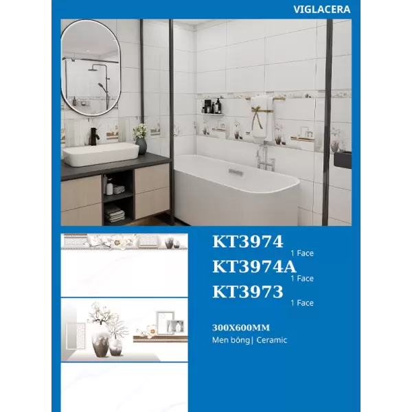 Với kích thước tiêu chuẩn 30x60cm, mẫu gạch KT3973-74-74A Ceramic là sự lựa chọn đa năng, phù hợp với nhiều loại hình công trình khác nhau: