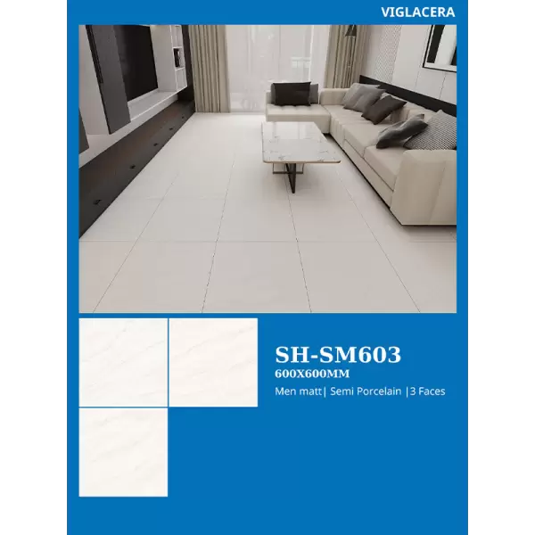 Gạch ốp lát Viglacera SH-SM603 là dòng sản phẩm gạch lát nền cao cấp thuộc thương hiệu Viglacera, nổi bật với chất liệu Semi Porcelain (bán sứ) độ bền vượt trội. Được sản xuất trên dây chuyền công nghệ tiên tiến từ Italia, gạch SH-SM603 mang lại vẻ đẹp vân đá tự nhiên cùng bề mặt men mờ chống trơn trượt, là giải pháp lý tưởng cho các không gian kiến trúc hiện đại, sang trọng.