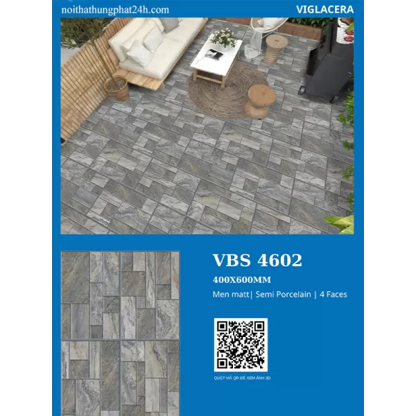 Gạch sân vườn Viglacera 40x60 VBS4602 là sản phẩm gạch Semi Porcelain chuyên dụng cho không gian ngoại thất. Điểm mạnh vượt trội của gạch nằm ở khả năng chống trượt hiệu quả, độ bền cao và thiết kế vân đá kẻ ô tinh tế. Sản phẩm phù hợp với các gia đình, chủ đầu tư, kiến trúc sư tìm kiếm giải pháp lát nền bền đẹp, an toàn. Đây là lựa chọn lý tưởng cho sân vườn, ban công, lối đi và các khu vực ngoài trời khác.