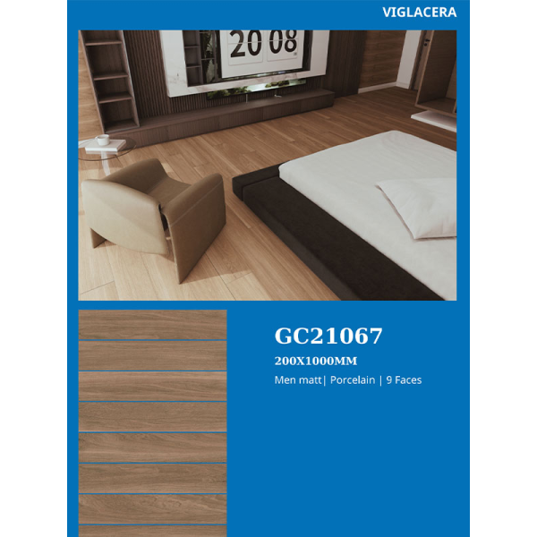 Trong phân khúc gạch khổ 20x100cm, mã GC21067 thuộc nhóm trung – cận cao cấp, tập trung vào xương porcelain bền chắc và thiết kế vân đá theo xu hướng tối giản.
