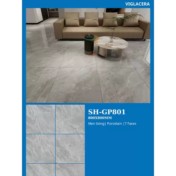 Gạch Viglacera 80x80 GP801 là dòng gạch lát nền cao cấp thuộc phân khúc Porcelain (sứ) đồng chất, được sản xuất trên dây chuyền công nghệ tiên tiến của Italia, nổi bật với khả năng chịu lực vượt trội. Sản phẩm sở hữu kích thước lớn 80x80cm, men bóng sang trọng cùng họa tiết vân đá tinh tế, mang lại vẻ đẹp đẳng cấp và độ bền vượt trội cho mọi công trình, là lựa chọn lý tưởng cho các không gian rộng.