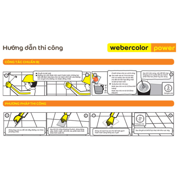 Tiêu chuẩn: Dòng Weber Color Power đạt tiêu chuẩn chống thấm, kháng nấm mốc, kháng chất tẩy rửa.