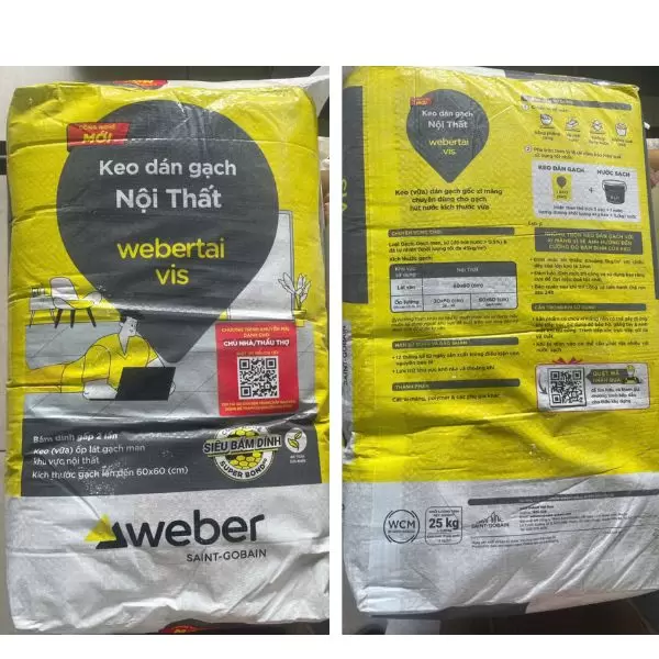 Trên bao bì có ghi đầy đủ thông tin sản phẩm, hướng dẫn sử dụng , khu vực nên sử dụng , ... nên quý khách hàng yên tâm khi chọn sản phẩm keo dán gạch weber