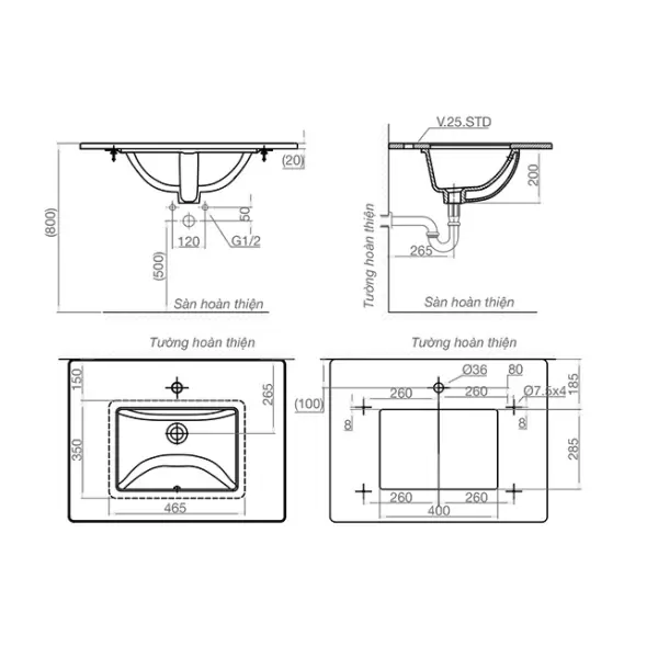 Chậu rửa mặt lavabo âm bàn Viglacera V.25.STD chính hãng giá rẻ tại Nội Thất Hưng Phát