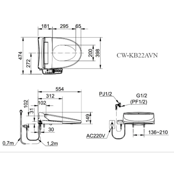 → Nắp bồn cầu thông minh điện tử Inax CW-KB22AVN tương thích hầu hết các sản phẩm bồn cầu của Inax như: