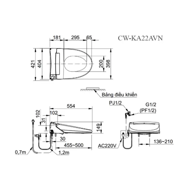 Bản vẽ kỹ thuật nắp bồn cầu thông minh Inax CW-KA22AVN
