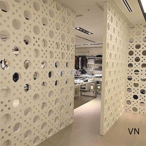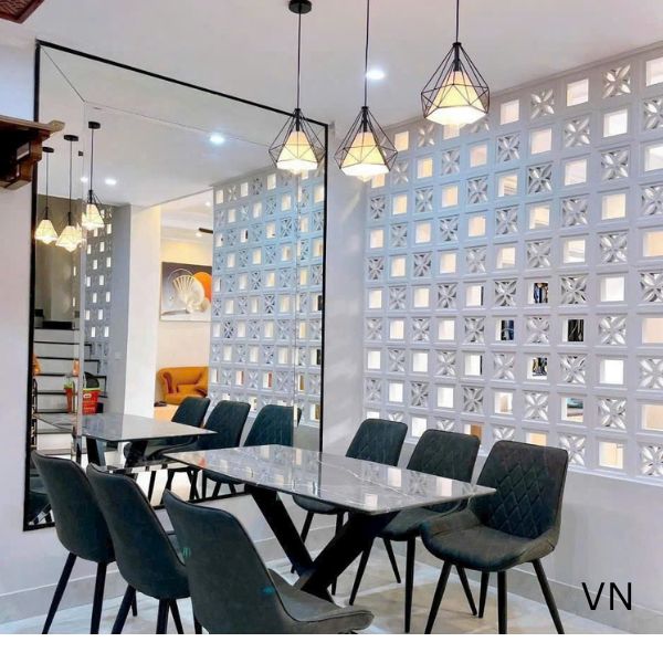 Gạch bông gió là giải pháp tuyệt vời để phân chia không gian một cách linh hoạt và thẩm mỹ. Vách ngăn gạch bông gió không chỉ tạo sự riêng tư mà còn đảm bảo sự thông thoáng và ánh sáng cho không gian. Phối cảnh gạch bông gió làm vách ngăn có thể được sử dụng trong nhiều không gian khác nhau, từ phòng khách, phòng ngủ đến văn phòng, quán cafe.