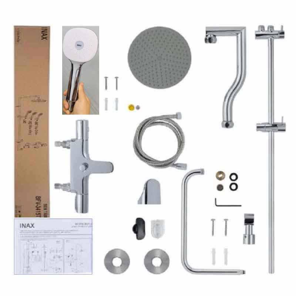 Hệ thống sen cây tắm nhiệt độ Inax BFV 3415T 8C bao gồm các phụ kiện quan trọng, mỗi bộ phận có chức năng riêng để tối ưu hiệu suất và nâng cao chất lượng sử dụng.