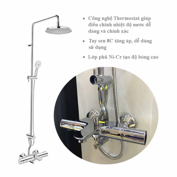 Một trong những điểm nổi bật của vòi sen này là công nghệ Thermostat, cho phép điều chỉnh nhiệt độ một cách nhanh chóng, chính xác, ổn định và an toàn. Người dùng có thể dễ dàng chọn nhiệt độ mong muốn mà không cần lo lắng về sự thay đổi đột ngột của nước, điều này rất quan trọng để bảo vệ làn da nhạy cảm và đảm bảo sự thoải mái tối ưu khi tắm.