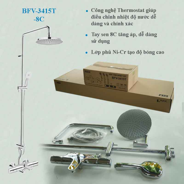 Sen cây tắm nhiệt độ Inax BFV 3415T 8C là sản phẩm tiên tiến với công nghệ Thermostat, giúp điều chỉnh nhiệt độ nước dễ dàng. Ngoài ra, tay sen tăng áp còn mang lại trải nghiệm tắm thoải mái, tiện lợi và tiết kiệm nước.